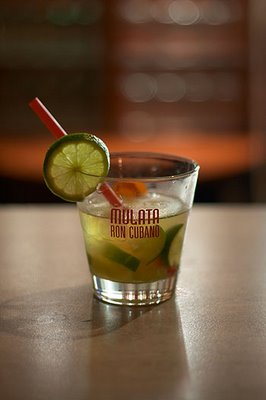 • Die Limette achteln und in einen Tumbler oder Becherglas geben. Den braunen Zucker darüber schütten. Mit einem Stößel den Saft aus der Limette drücken. Das Glas mit Crushed Ice auffüllen. Den Rum in das Glas füllen. Sehr gut verrühren.