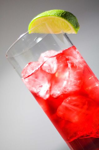 • Wodka, Pfirsichbrand und Cranberrysaft dazu geben und verrühren.